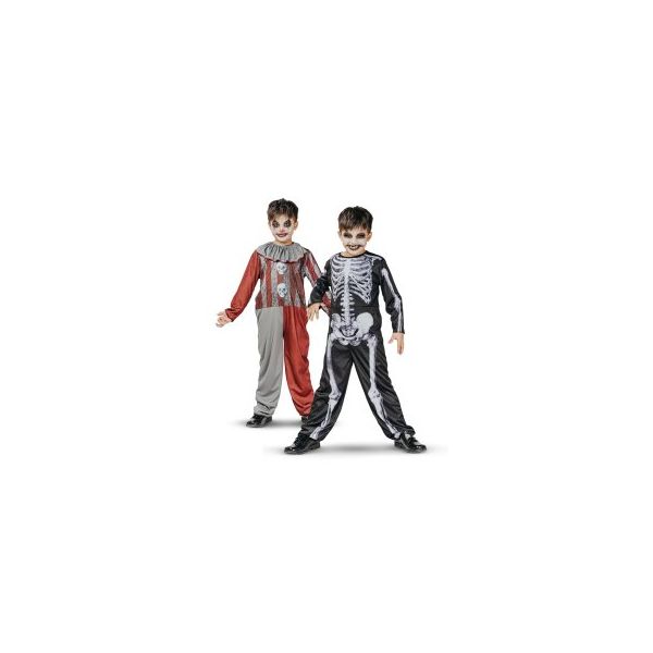2-i-1 klovn/skelet. Vendbar jumpsuit. 2 dragter i én